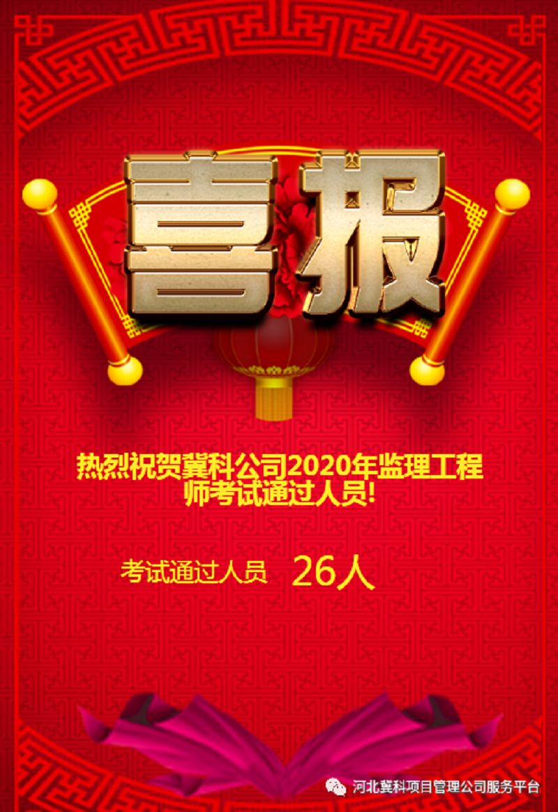 热烈祝贺公司26名员工通过2020年监理工程师考试