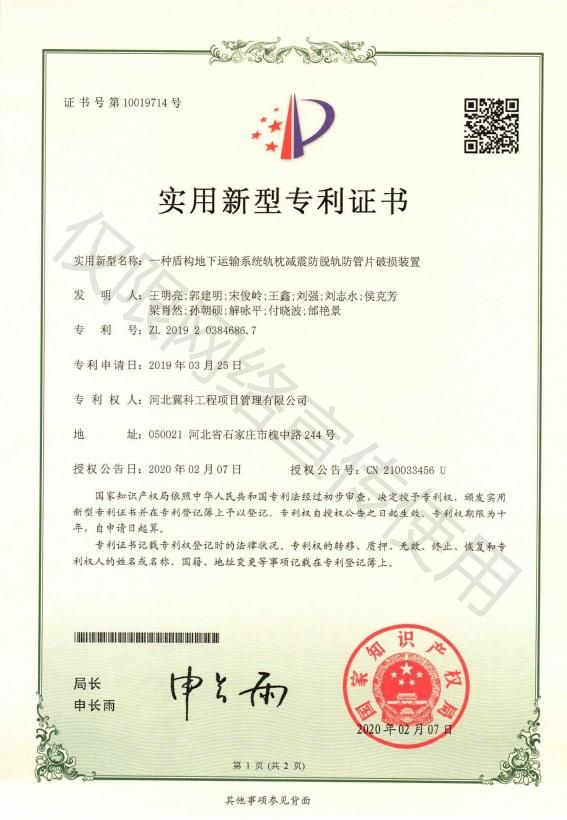 一种盾构地下运输系统轨枕减震防脱轨防管片破损装置
