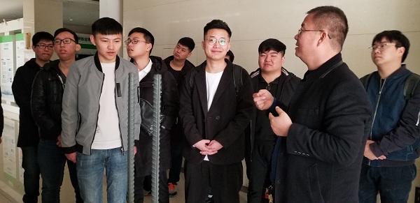 为使学生们充分了解行业关键技术,工程部经理刘强带领求职学子们参观了河北省建筑科技研发中心,详细介绍了被动式低能耗建筑、现代木结构装配式建筑、清水混凝土装配式建筑等绿色节能建筑。