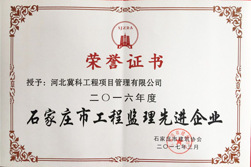 我公司被评为2016年度石家庄市工程监理诚信企业、先进企业