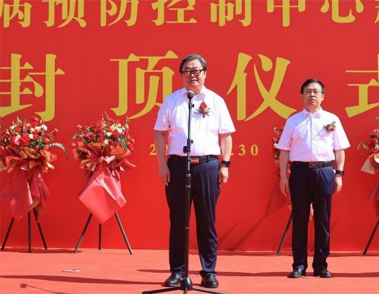 河北省疾病预防控制中心书记崔泽宣布新建实验楼主体封顶